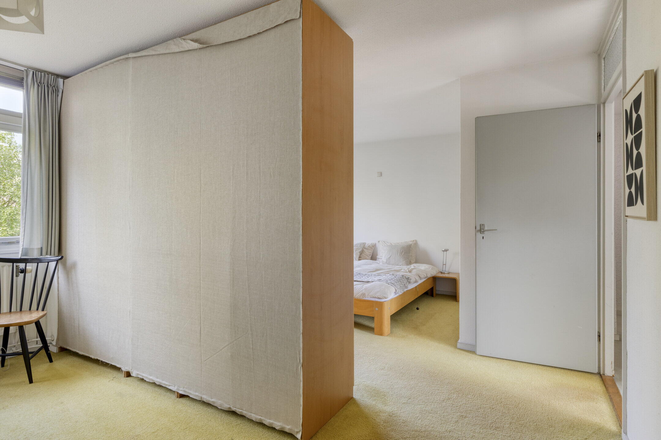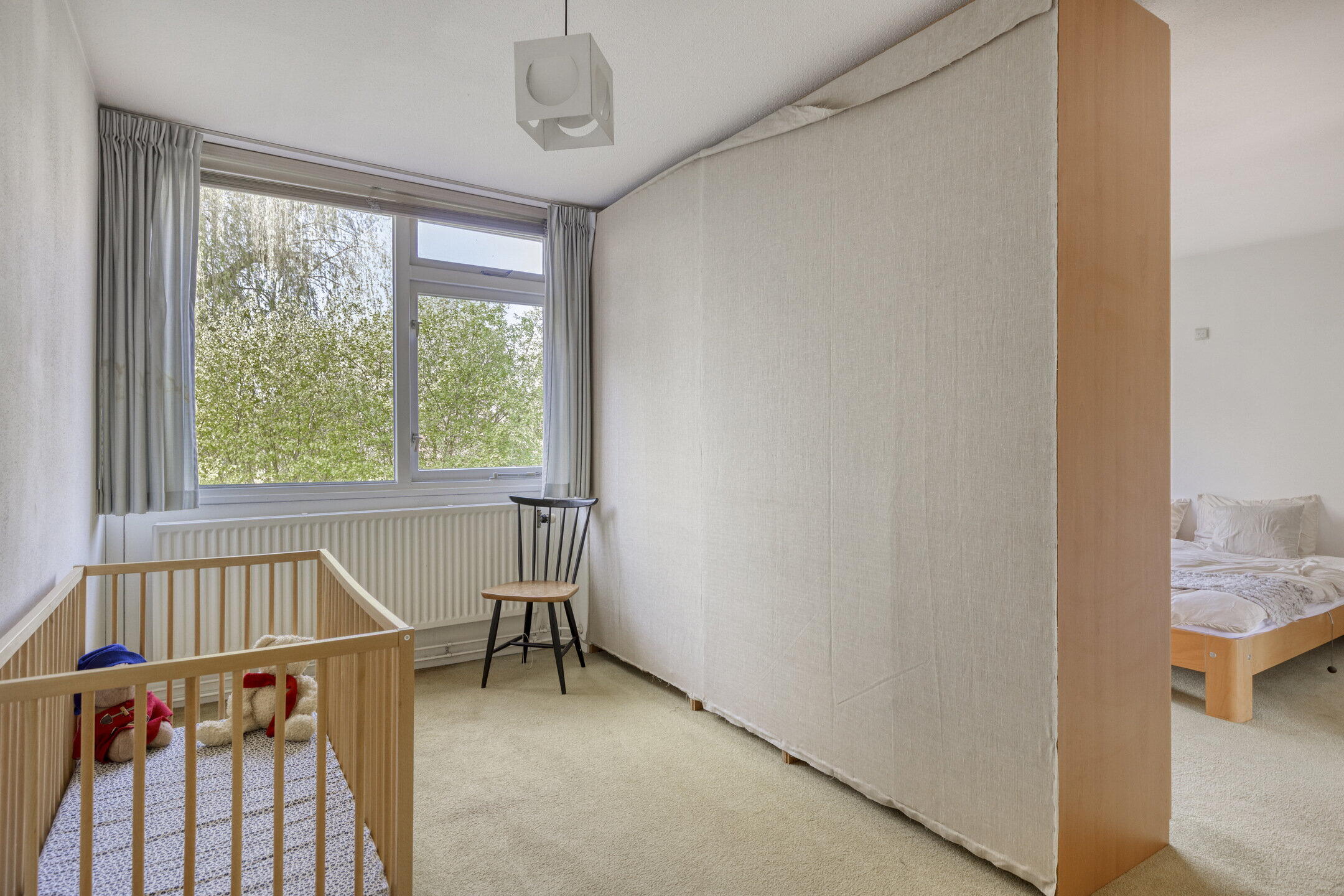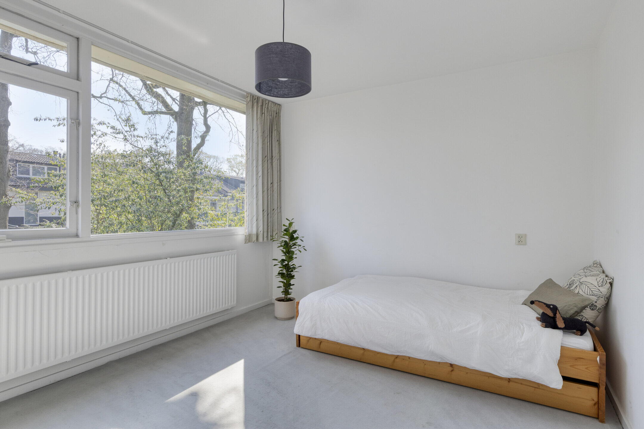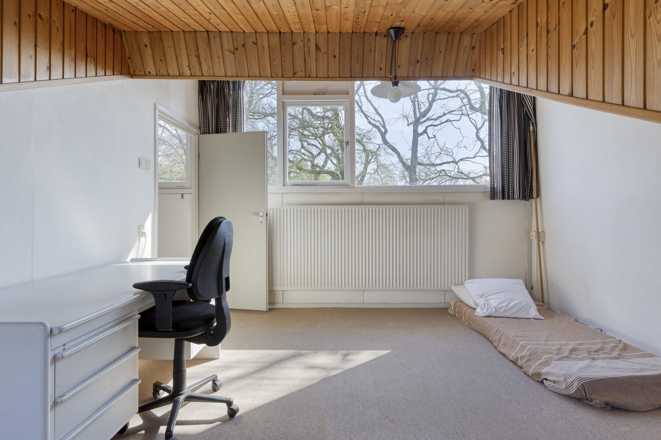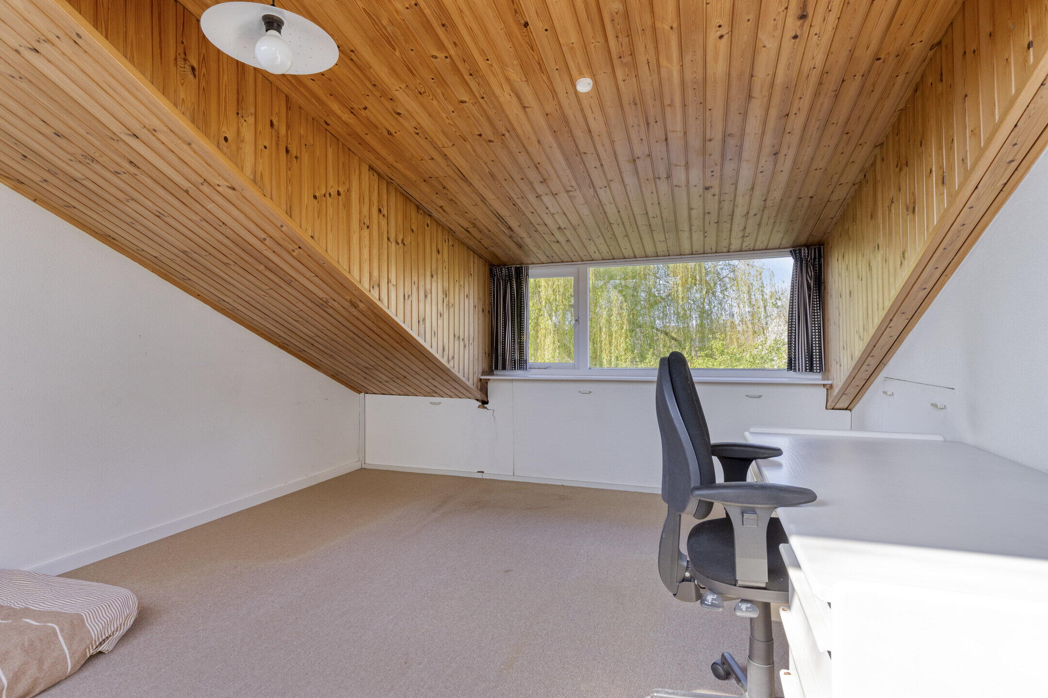 De zolderkamer heeft met de dakkapel aan de achterzijde lekker veel doorzon licht. Deze multifunctionele ruimte is als slaap-/logeerkamer prima te combineren met een thuiswerkplek of hobbyruimte.