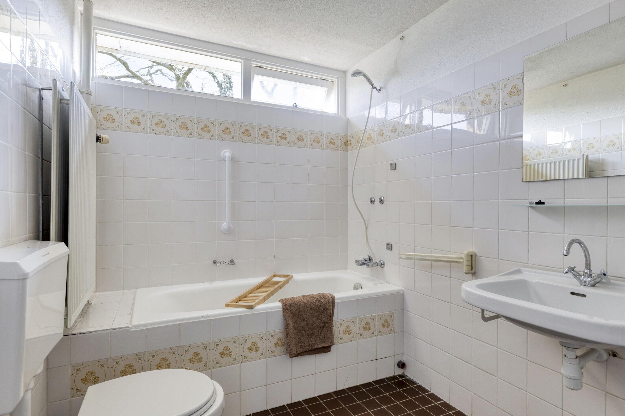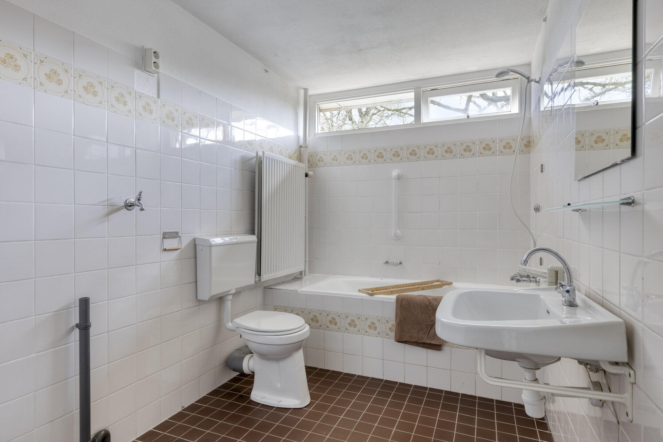 - Ligbad, toilet, wastafel, wasmachineaansluiting
