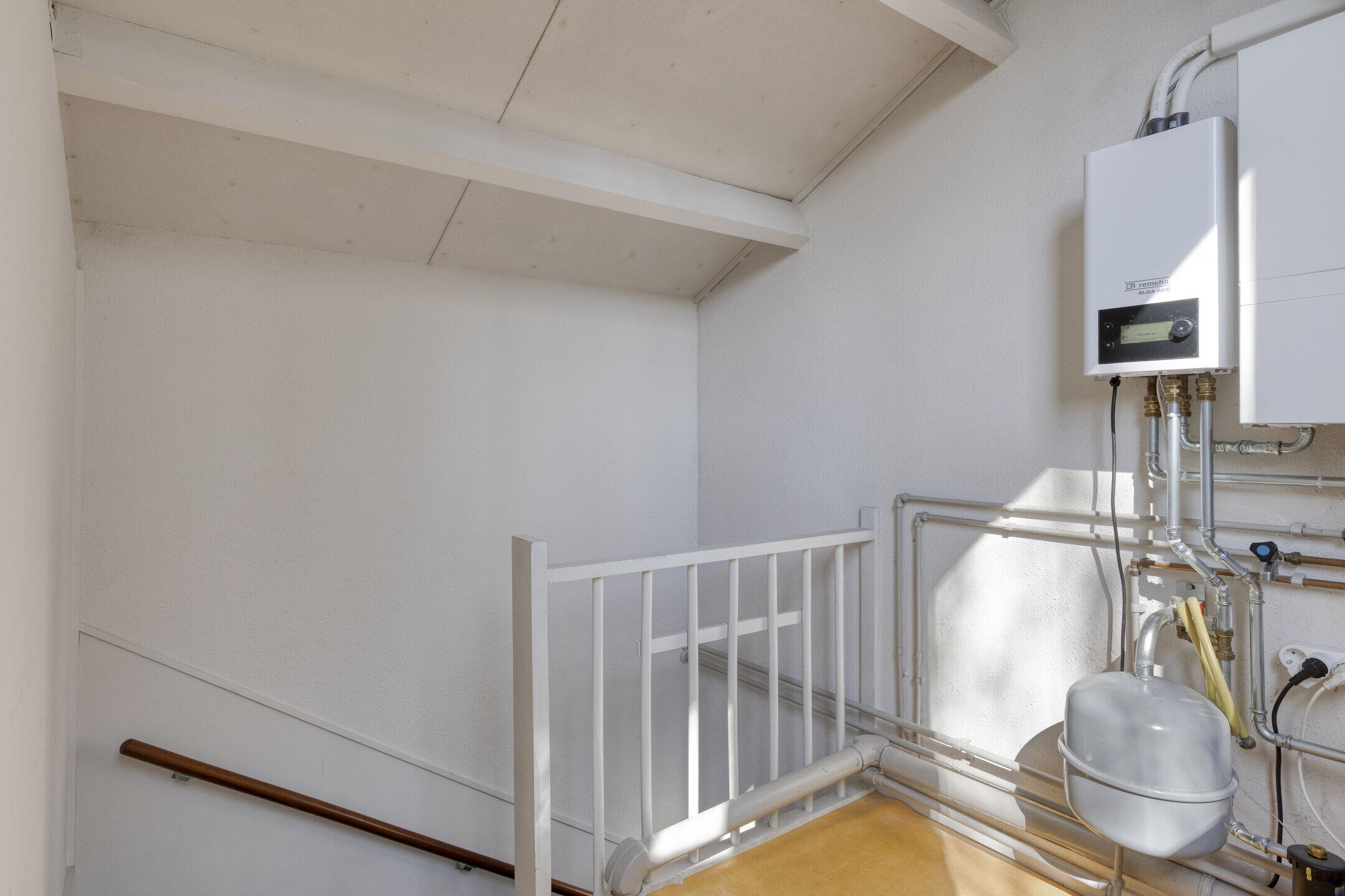 Tweede verdieping: volwaardige zolderetage die thans is opgedeeld in een voorzolder met veel bergruimte en de opstelling van de hybride cv-installatie.