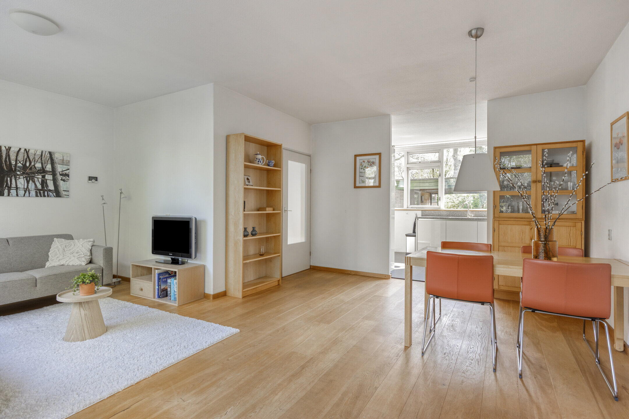 Begane grond: entree; ruime hal met garderobe, meterkast, toilet met fonteintje. Lichte, tuingericht woonkamer met fraaie houten vloer en deur naar het terras.